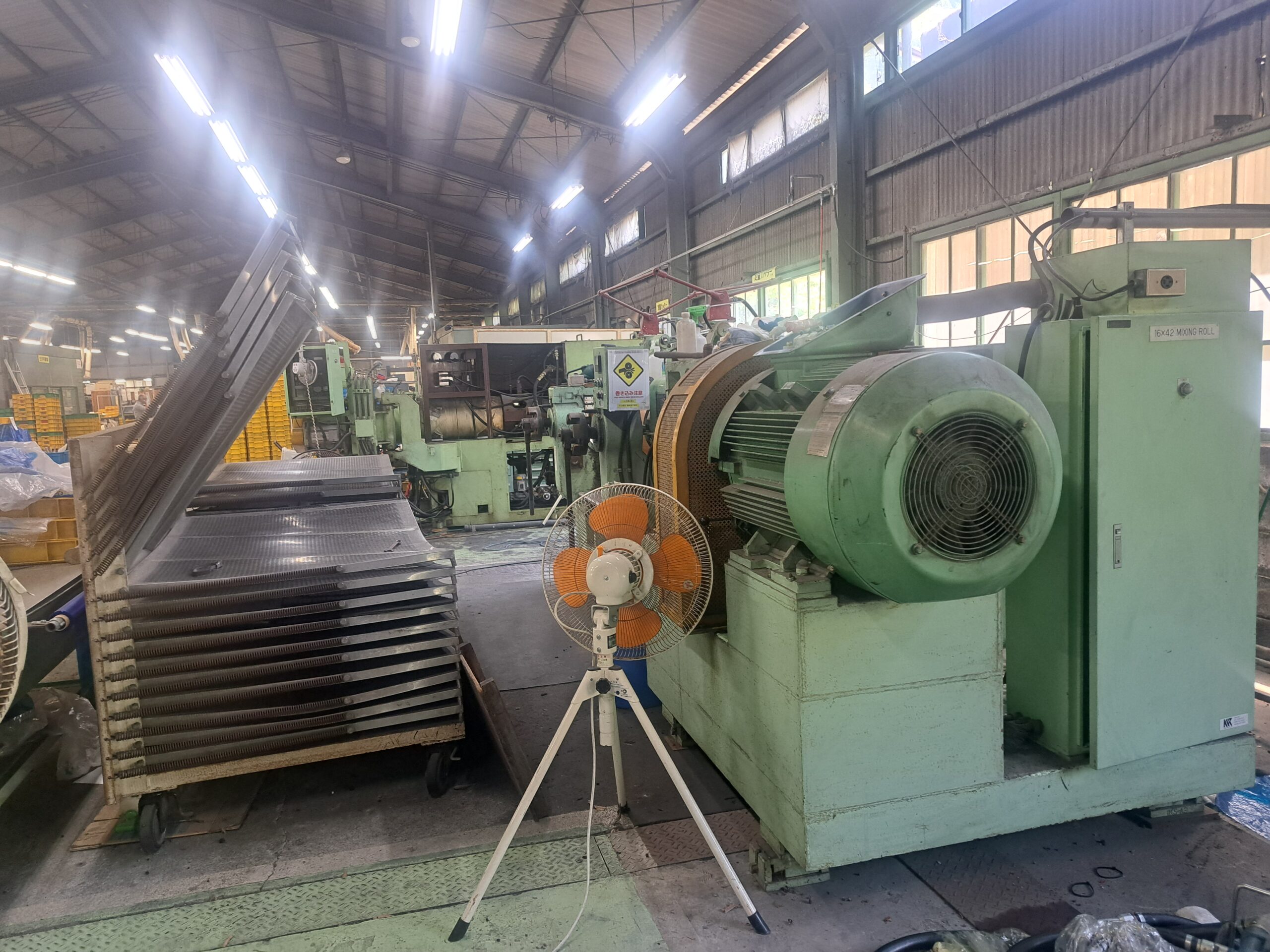 販売中 16インチミキシングロール 16インチミキシングロール 仕様 16”×42” 55Kw 1995年8月製 関西ロール 14インチミキシングロール 前の記事 100トン成形2段3連成形プレス 次の記事